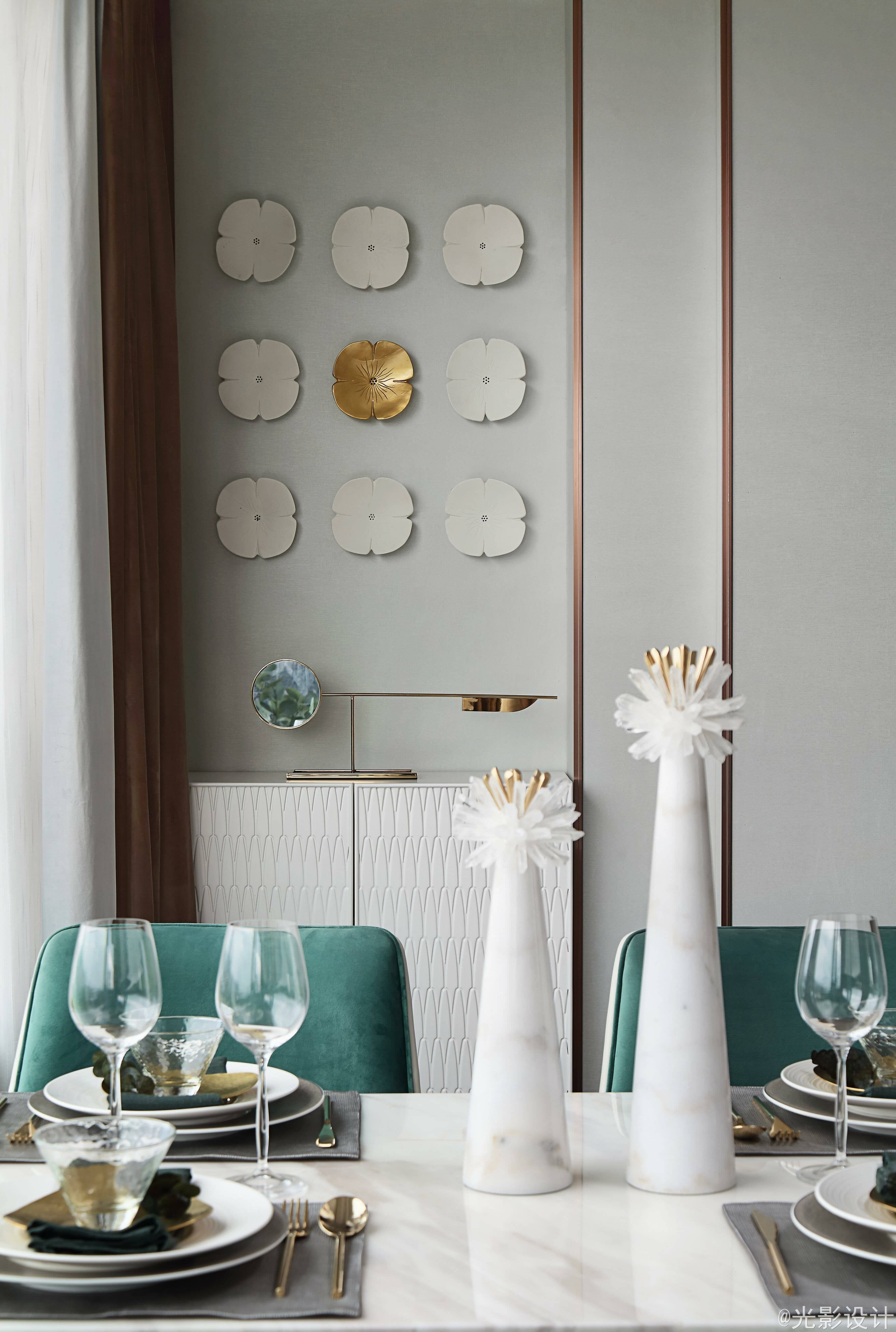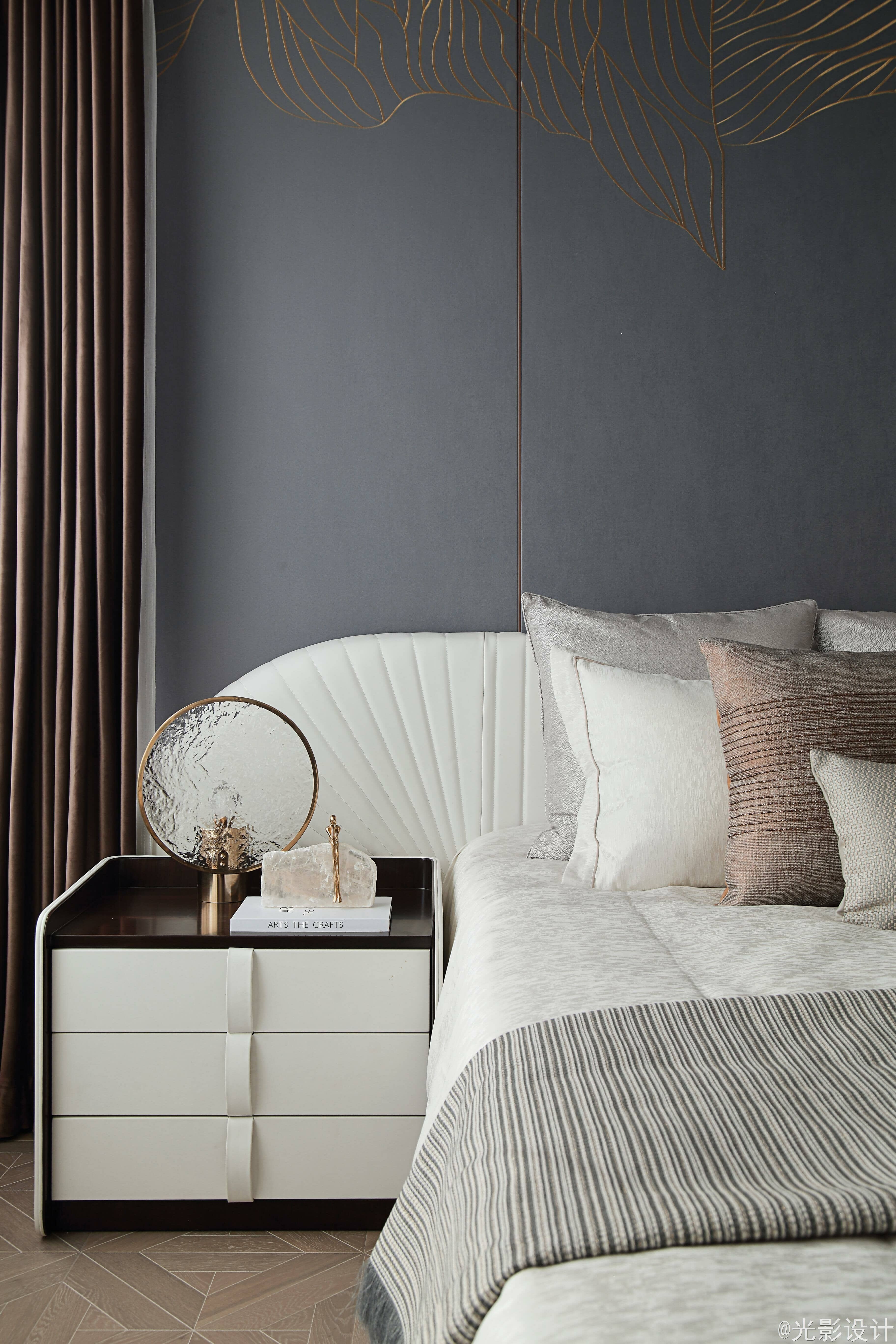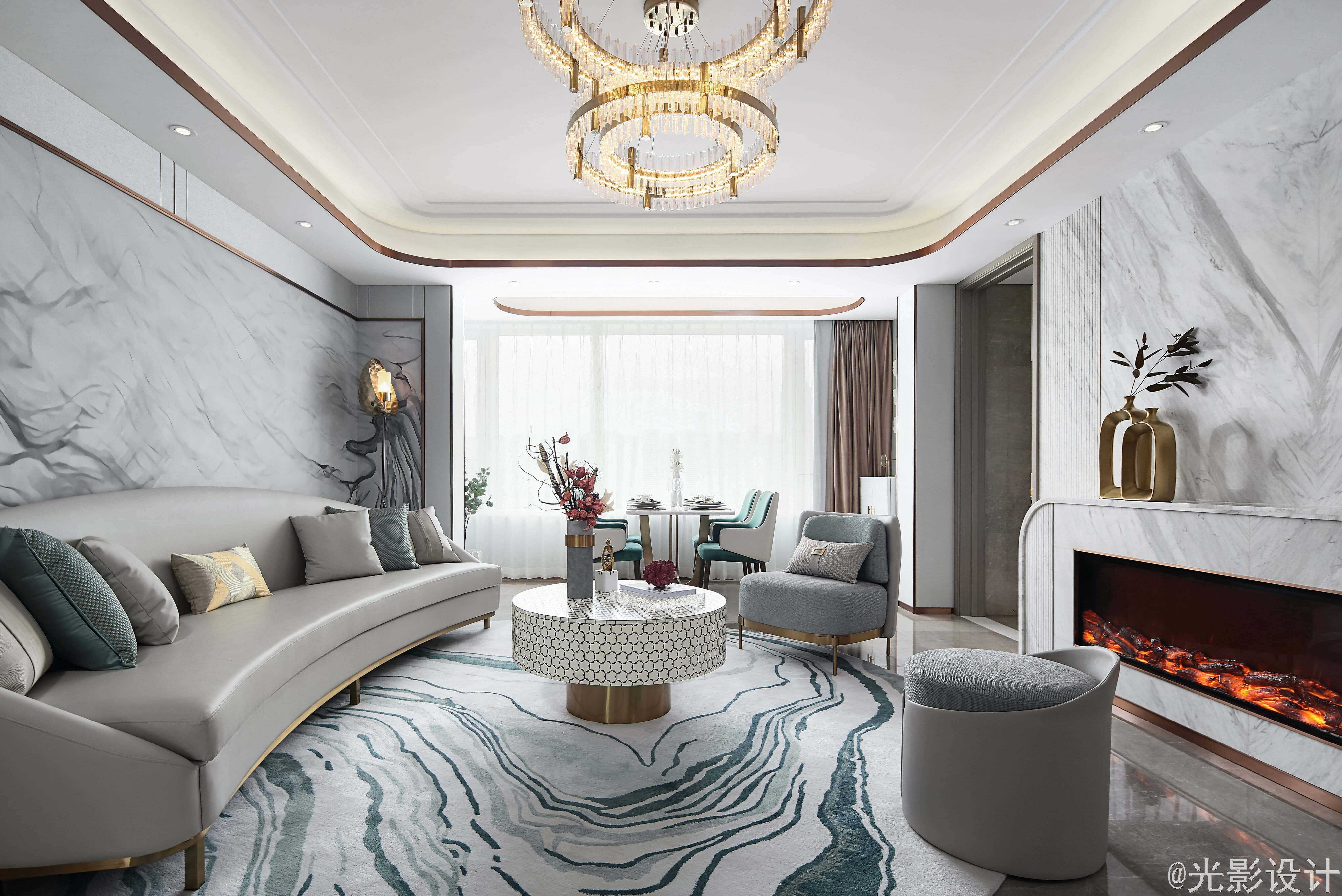 设计样板房就像是在导演一出戏,为设想中的业主提供一个舞台,让观者成为其中的主角,从而实现他们的想象与梦境。比起豪奢,本案的轻奢风更加轻松、亲切、温暖,消弭心与物之间的芥蒂,真正做到乘物游心的空间体验。